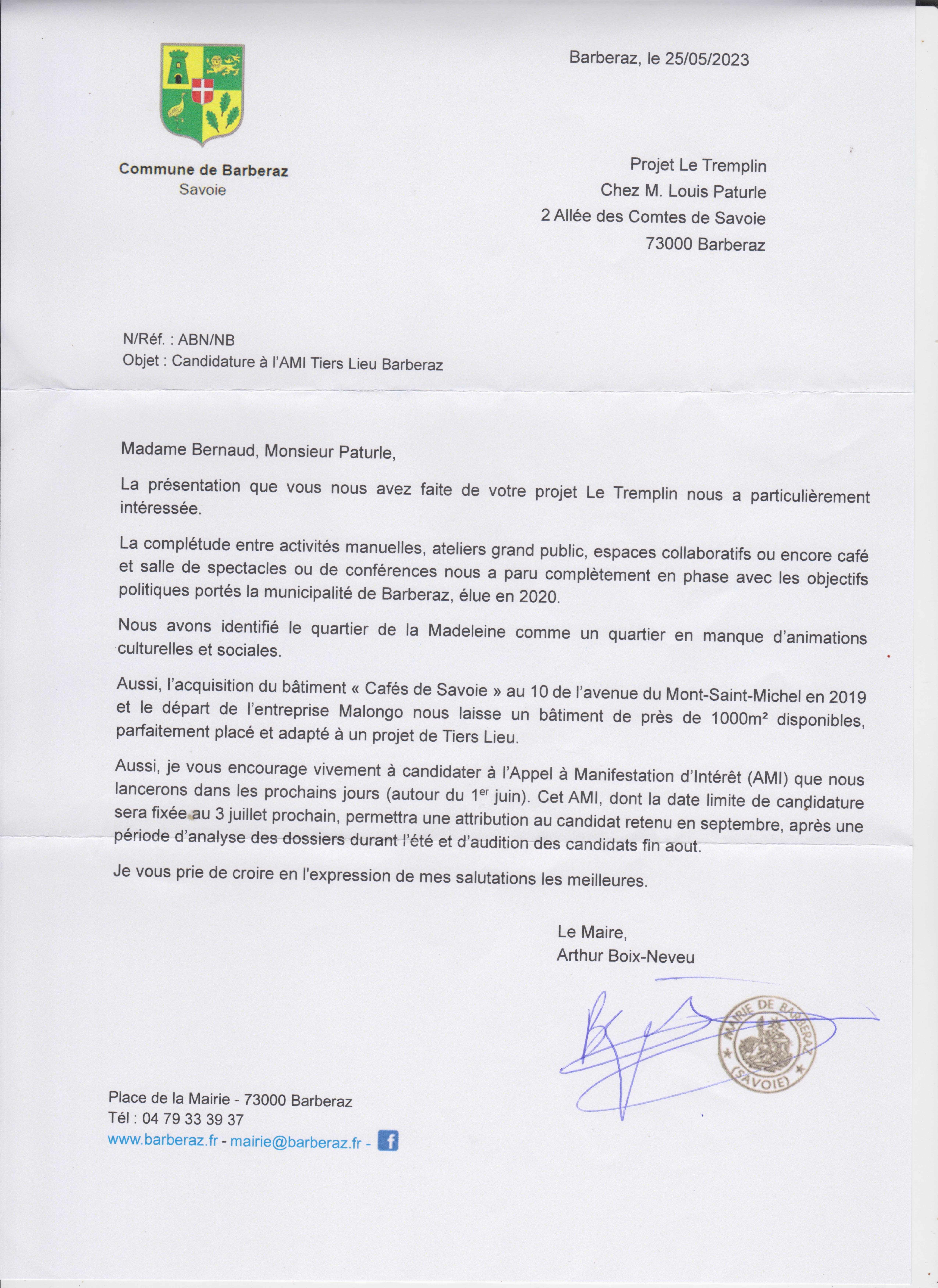 Concernant les locaux, nous échangeons régulièrement sur le projet avec l’équipe municipale de Barberaz qui prévoyait dès le début de leur mandant la création d’un Tiers lieu sur la commune. La collectivité a identifié un lieu de 1000 m2 qui pourrait accueillir un tel projet. Nous répondons actuellement à l’appel à manifestation d’intérêts (AMI) publié par la Mairie de Barberaz pour l’occupation de ce lieu et dont l’issue sera connue cet été.