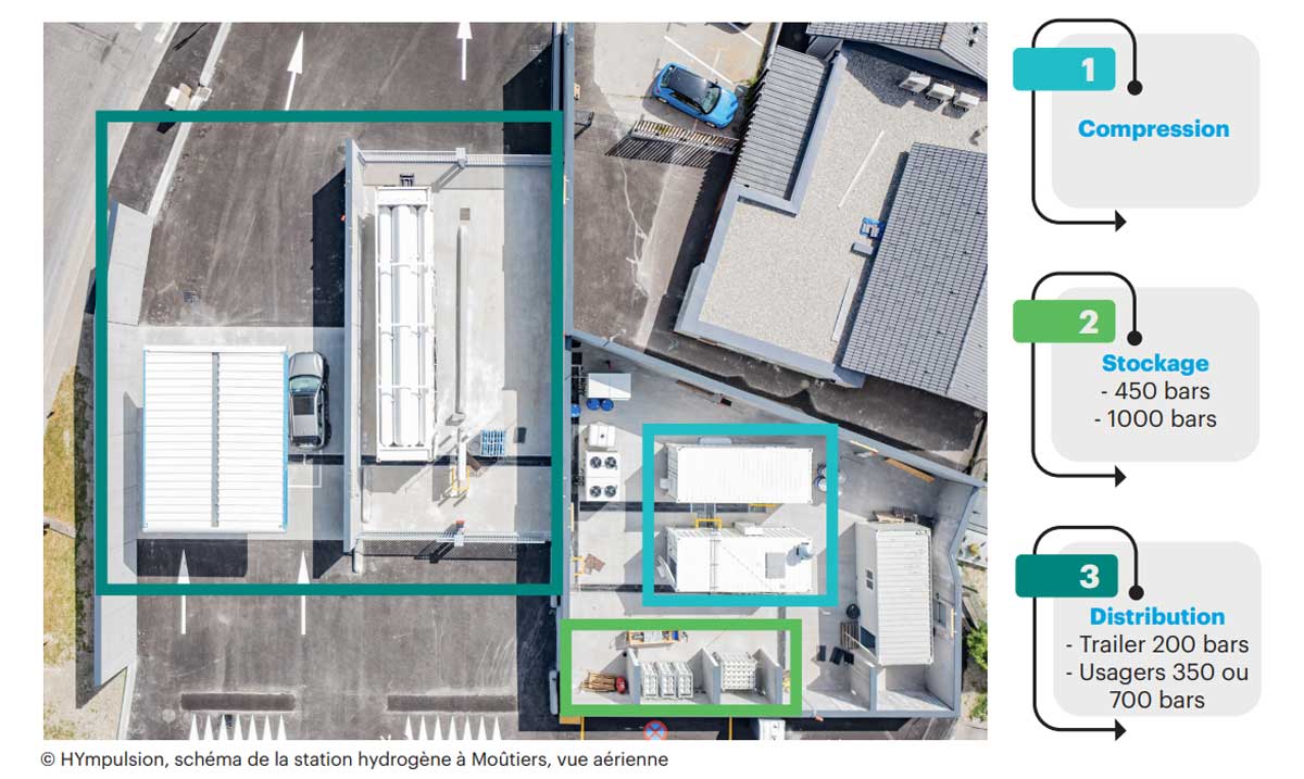 La station hydrogène de Moûtiers permettra au bus de remplir ses réservoirs afin d'être centralisé sur Moûtiers et d'avoir un rayon d'action de 350 km.