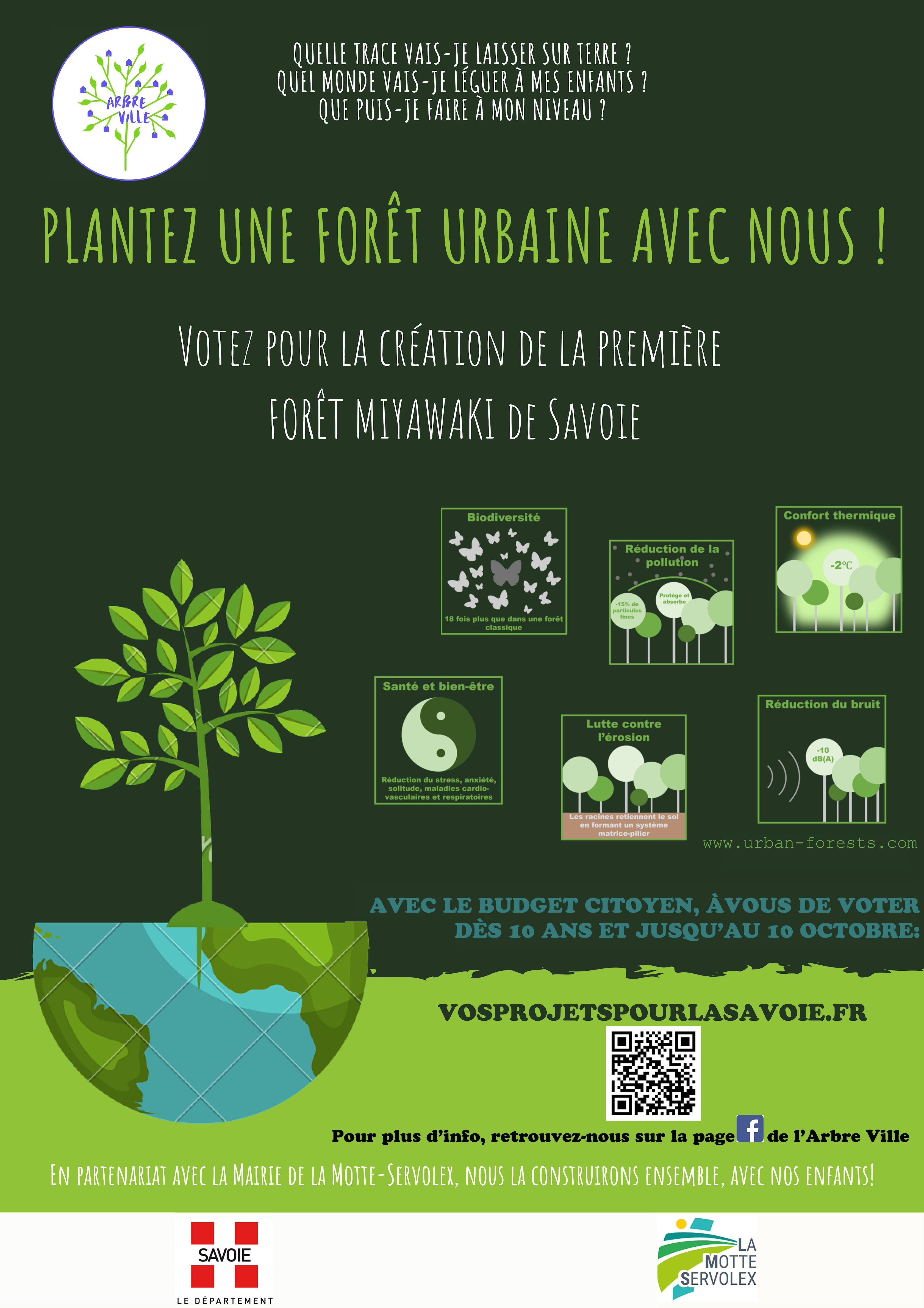 La création de la première forêt Miyawaki en Savoie, avec et pour ses habitants, serait à la fois un bol d'air pour tous dans un contexte anxiogène et une véritable action de sensibilisation aux enjeux environnementaux. Ce projet permettrait de rapprocher des personnes de tous âges et de tous milieux afin d'améliorer, ensemble, notre habitat et notre qualité de vie. Au-delà des trois ans la forêt sera dite autonome, nous pourrons constater le retour d'une biodiversité végétale et animale. Cela pourra ouvrir, pour ceux qui le souhaitent, un lieu d'observation, d'étude et de suivis de ces espaces ainsi crées.Selon une étude publiée en 2020 par UrbanForests, les bénéfices d'une forêt urbaine sont multiples:rafraîchissement et amélioration de la qualité de l'air, diminution du bruit, impact positif sur la santéet le bien-être, régulation de la biodiversité, stabilité des sols et séquestration du CO2.