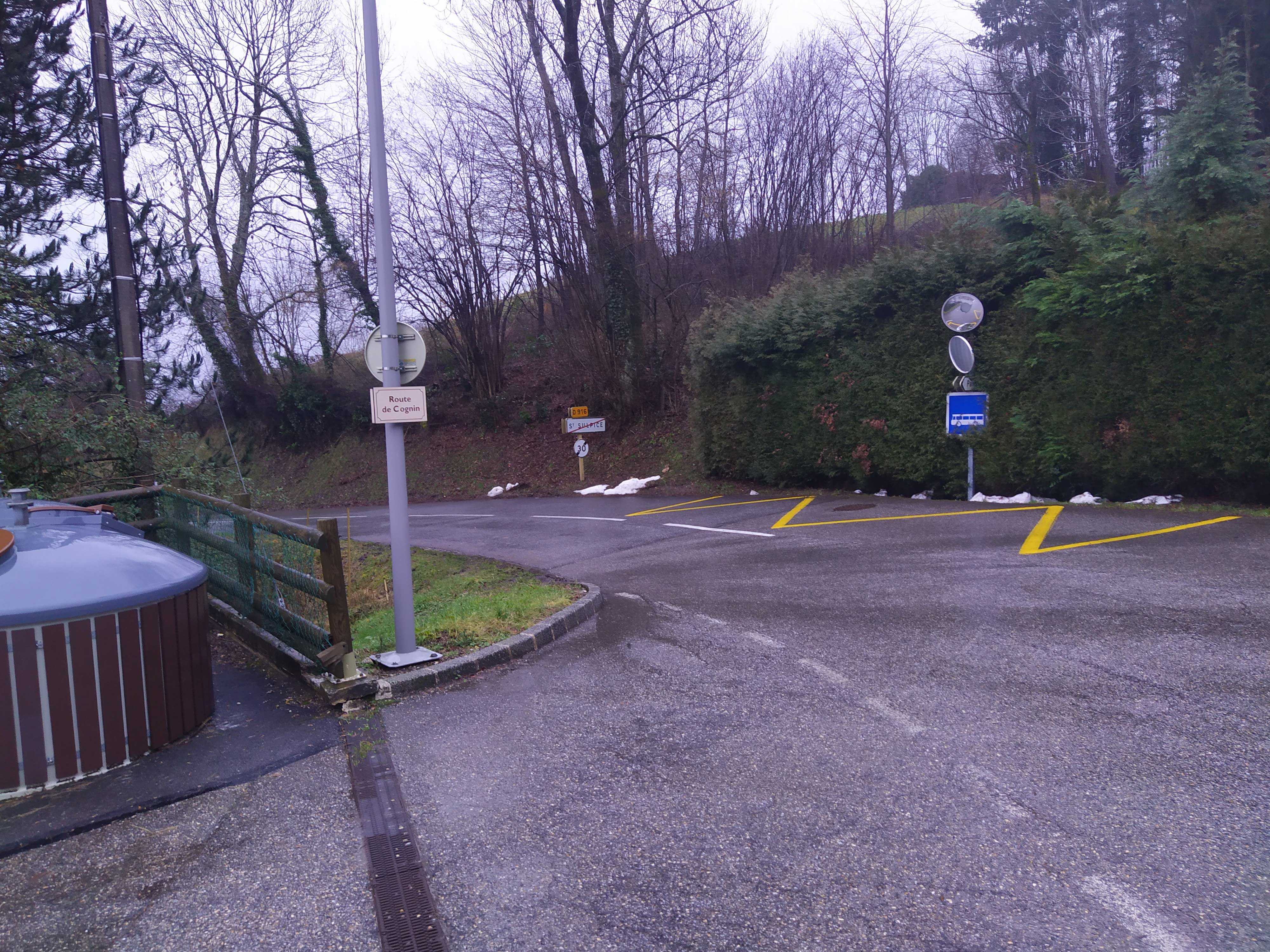 Les virages en amont et en aval de la sortie du parking de l'école empêchent une bonne visibilité. L'idée serait d'installer un système avertissant de la présence d'un véhicule prêt à s'insérer dans la circulation de la RD 916, par l'installation d'un détecteur de présence au niveau du stop de la sortie du parking et de deux panneaux envoyant des signaux lumineux aux véhicules approchant de la zone.