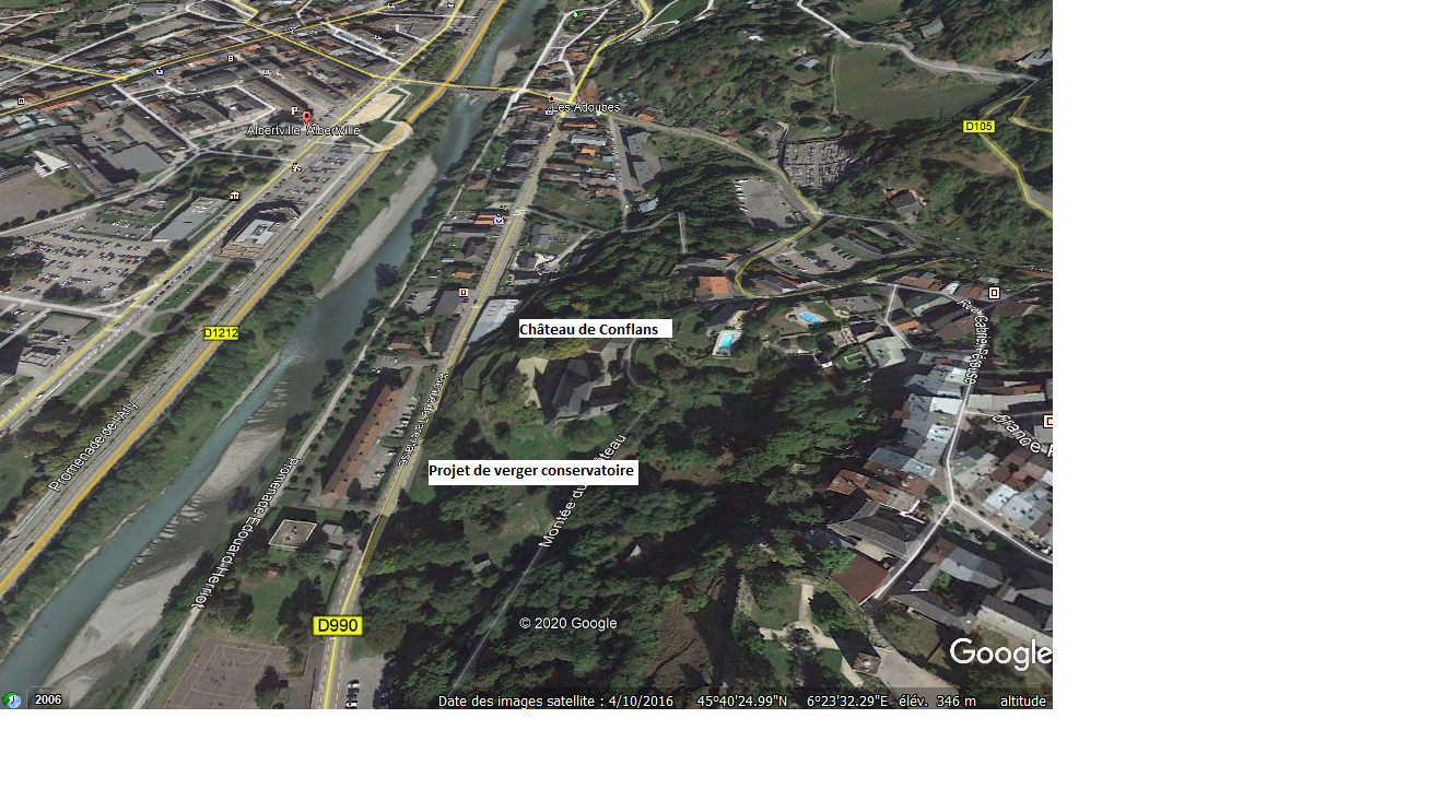 Le verger conservatoire d’Albertville sera implanté sur un hectare, à proximité immédiate du château de Conflans, lieu touristique chargé d’histoire (XVIe siècle), au cœur de la cité médiévale.